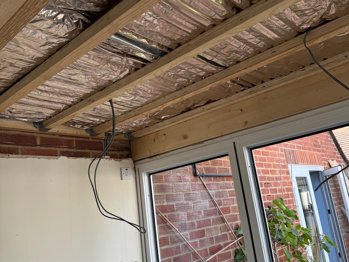 To comply with Part L (Thermal Efficiency), the new roof must meet a U-Value of 0.15 W/m²K. At KJM, we remove the entire existing roof structure before installing a brand-new, highly insulated Conservatory Warm Roof system.